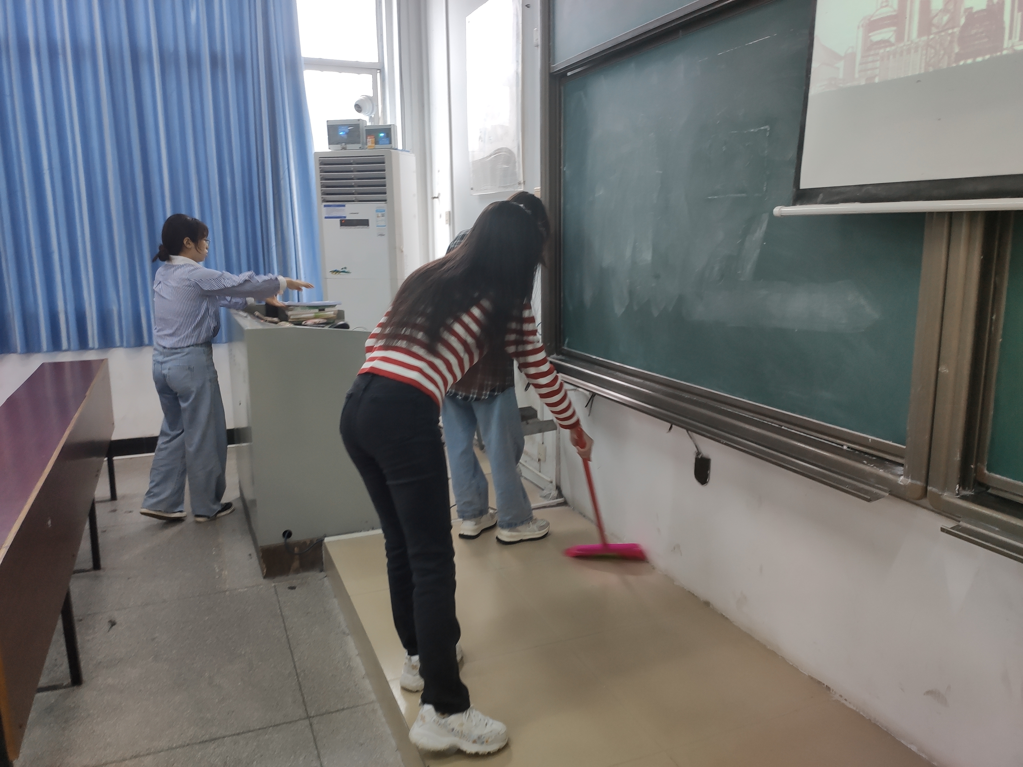 活动开始前,各组长组织小组成员集合,说明此次义务劳动的具体内容、要求以及注意事项,做好动员工作。活动过程中,各小组成员分工明确、干劲十足、默契合作,同学们忙碌的身影形成了一道亮丽的风景线。打扫结束后,培训班成员再次集合,发表自己的体会与感悟。至此,此次党员教育实践活动圆满结束。