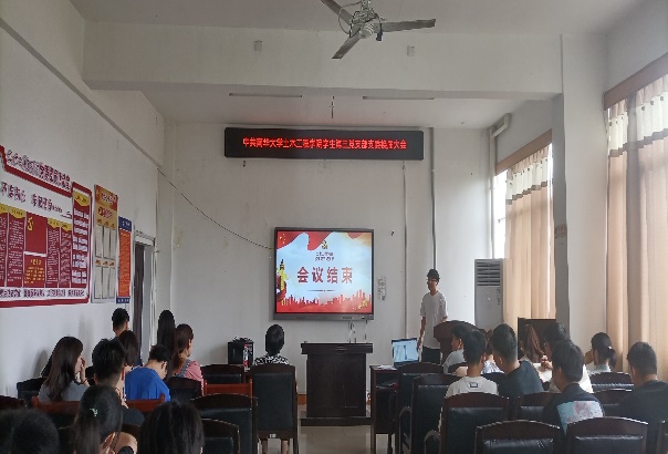 最后,由贺老师总结会议。首先,她对6名新同志加入支部表示祝贺,同时要求我们对积极向党组织靠拢的每一位同志都能以理性的态度看待他们的优缺点,无论是民族还是性别,都要力争能“百花齐放,百家争鸣”。其次,希望支部每一位党员做到言行一致、取长补短、有一颗努力进取,再创佳绩的心。另外强调,在即将到来的端午节期间,要严格遵守学校的规定,原则上不离衡、不离湘,非必要不外出,外出要及时报备行程,坚决守住疫情不出现规模性反弹的底线!