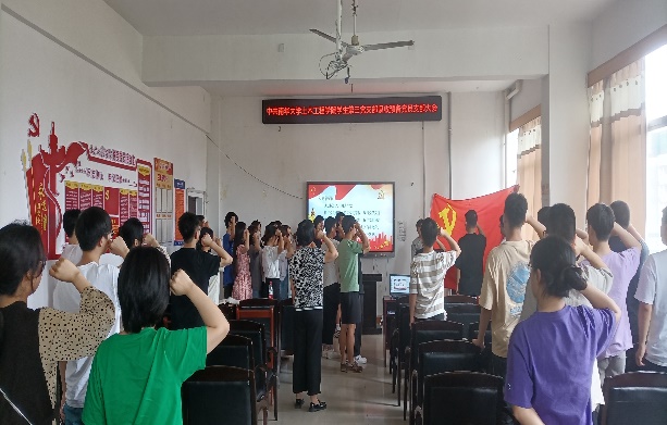 大会第三项,由郎颖同志带领全体党员重温入党誓词。