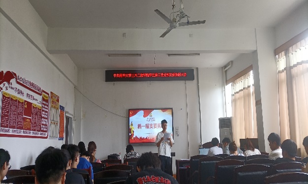 大会第四项,支委述职与补选。首先由现任支委郎颖等4名同志进行述职报告,讲述支部工作过程中的经历与收获,并对支部同志们的支持与帮助表示感谢,至此,任期圆满结束。随后,贺老师对支委的工作态度和能力进行了充分的肯定,感谢支委在任职期间的辛苦与付出,同时也鼓励新届支委的竞选。最终通过发言竞选与投票的方式确定李鹏辉等4名同志为新一届支委成员,继续担当作为,同支部一起成长。