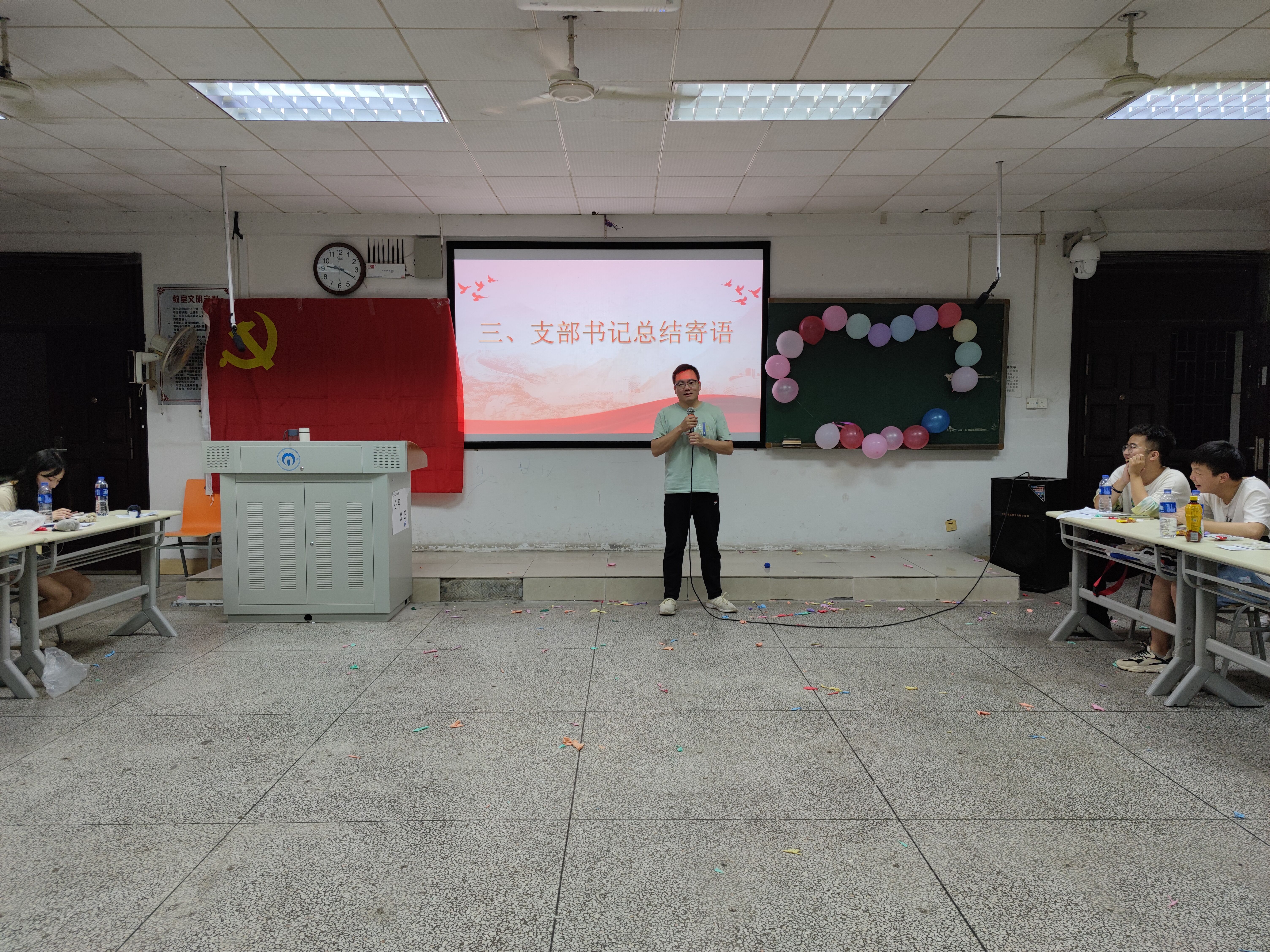 学生第二党支部书记吴旦老师对全体党员提出三点希望,希望全体党员能够细心工作、诚心待人、用心生活,在未来创造出更好的成绩。聚是一团火,散是满天星,党员的使命和责任永远只有进行时,学生第二党支部书记李翠新老师对支部全体毕业生党员表达了不舍和期望,希望大家不忘初心,保持热爱,脚踏实地,一步一个脚印走出自己的精彩人生。