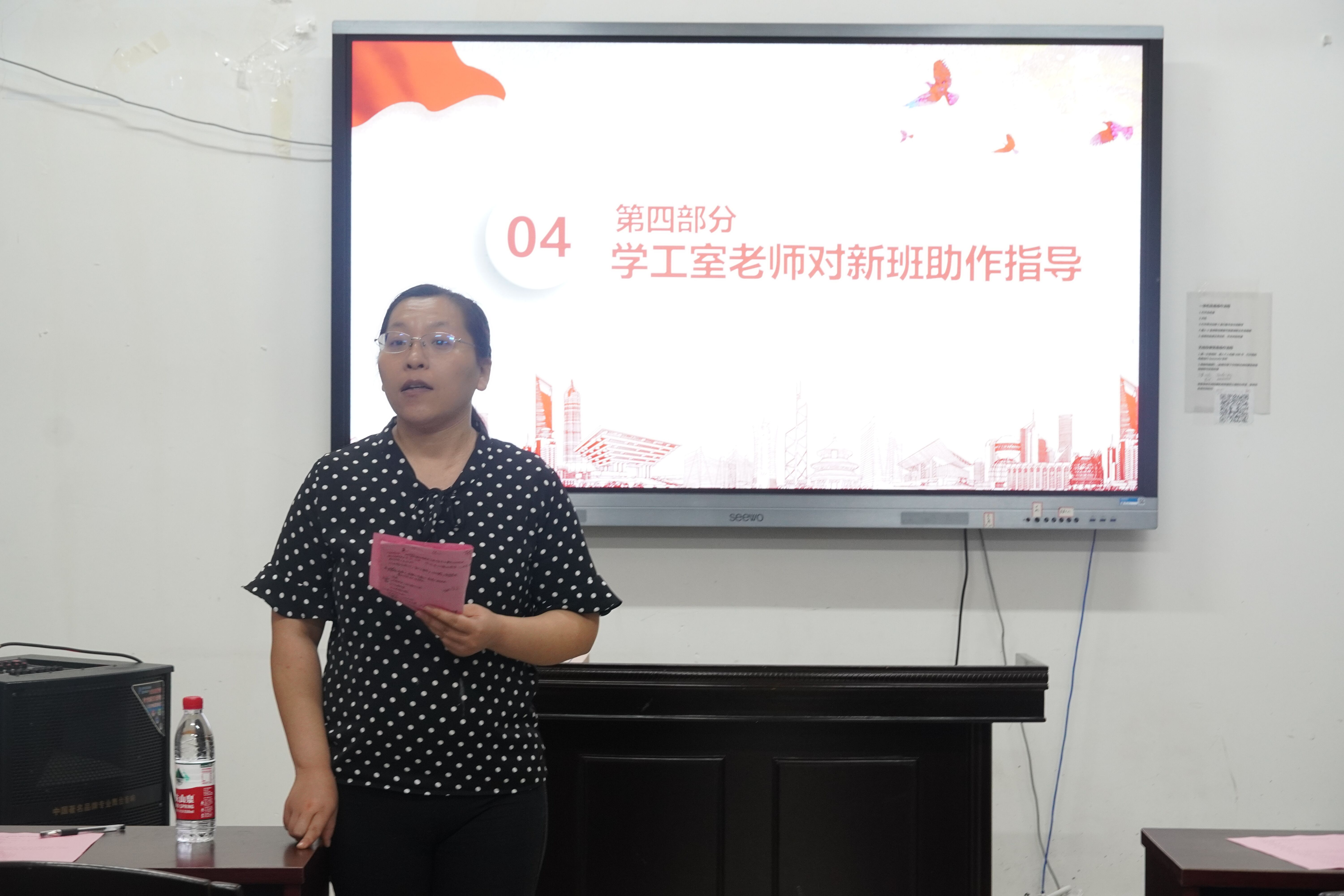 随后,刘华老师就分享内容作总结讲话。她提出,新生班助在工作中要与时俱进、学会思考、学会创新,传递正能量,给予正确指导,与新生共成长;并希望各位新生班助能够以饱满的热情和积极的态度,在与师长不断的沟通交流中进一步加强学院学风建设,提升学生精神面貌。