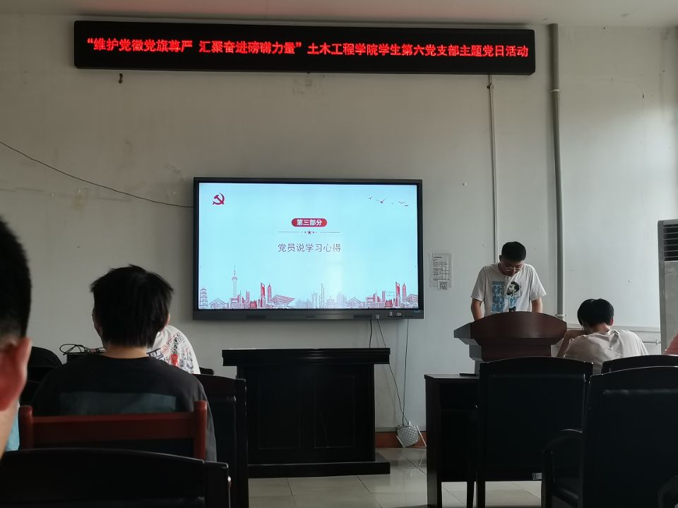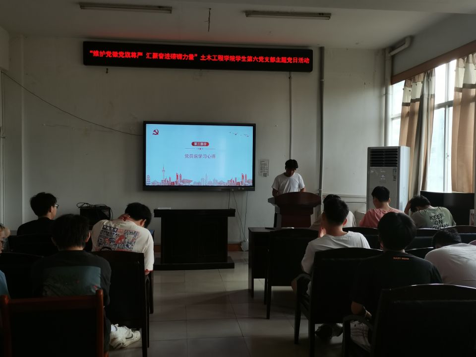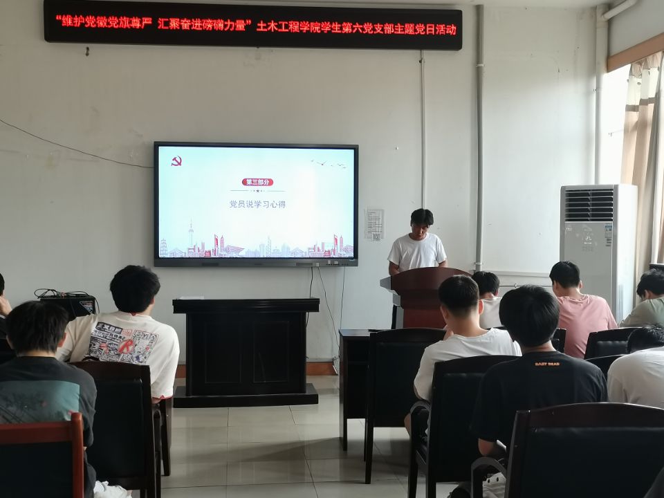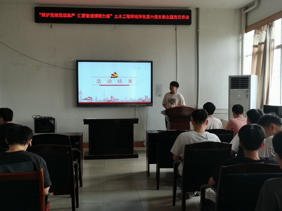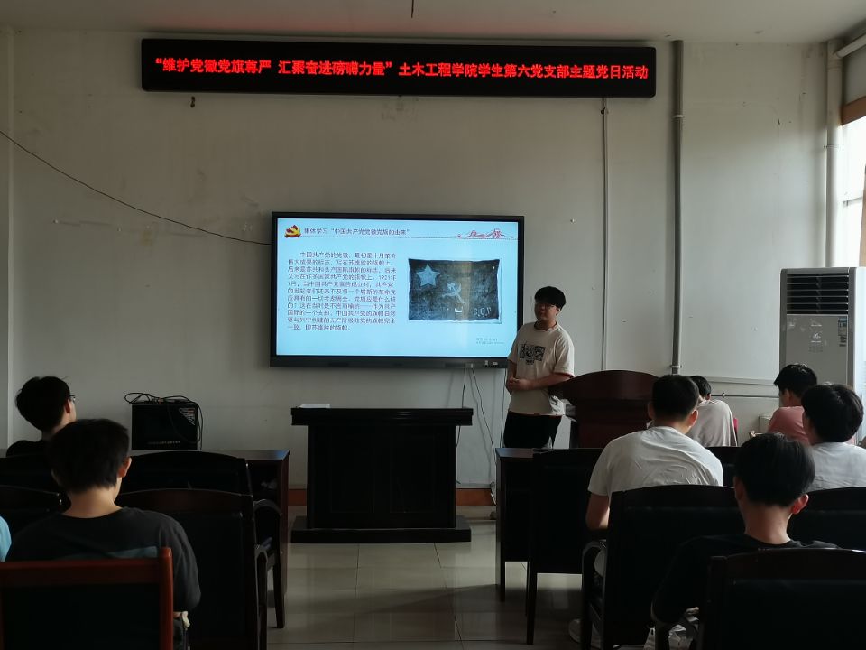 2022年6月27日15:00,伟德国际1946学生第六党支部于土木楼四楼会议室举行“维护党徽党旗尊严,汇聚奋进磅礴力量”主题党日活动。本次会议由宋章明同志主持,支部书记刘华老师及支部全体学生党员参加,共分四项进行。