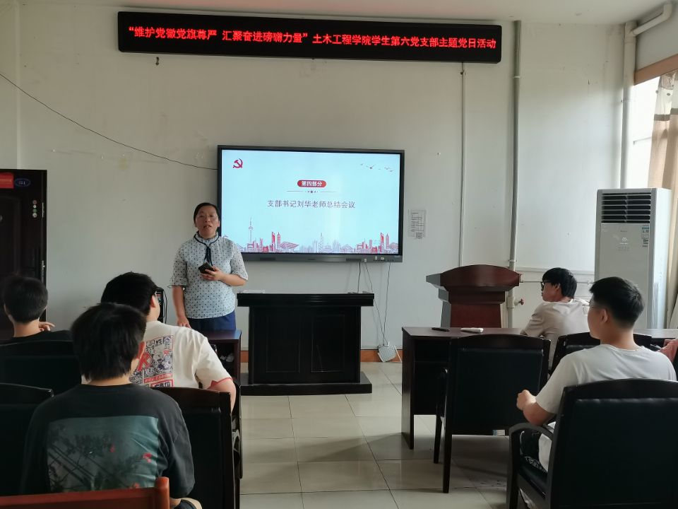 会议第四项,刘华老师对本次会议进行总结,重点强调了党员要在班级同学中发挥好模范先锋作用,不仅是在校期间,暑假也要带头营造良好的生活作息,维持良好的精神面貌。