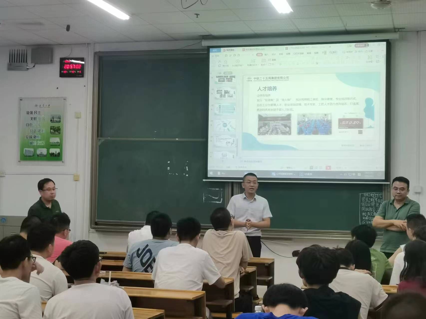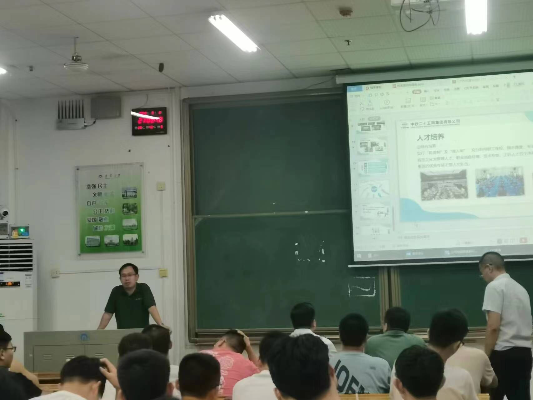 接着,中铁二十五局第三工程有限公司代表介绍公司概况及行业发展情况。“海天高任鸟飞,海阔凭鱼跃”,他用这句诗表达了对这一行业工作者建设祖国山河、对祖国的发展做出贡献的肯定与同学们在未来美好发展的展望。