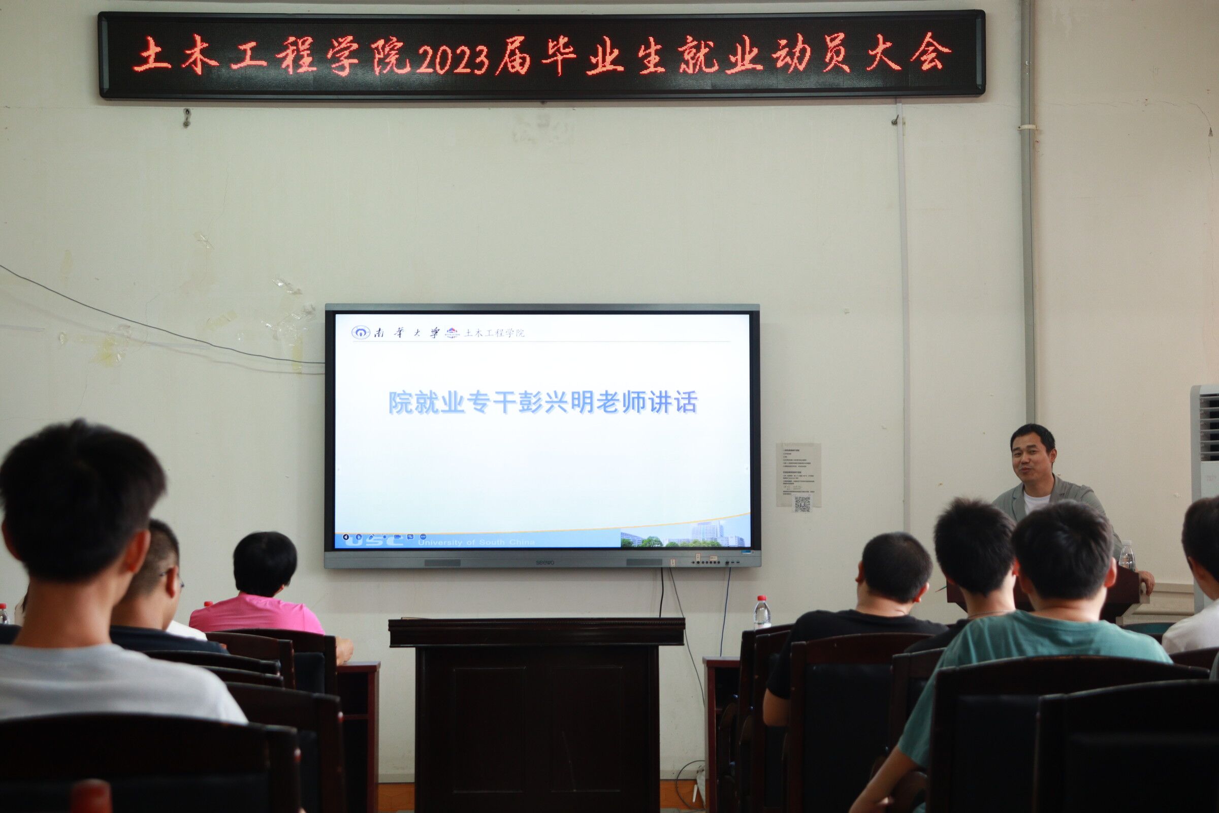 紧接着,彭兴明对班级就业专干工作提出建议,对目前毕业生就业方面遇到的问题进行解答;要求各班就业专干准确传达就业信息,了解班级同学的就业意向;同时,他提醒同学们一定要正确认识当前就业形势,及时参加双选会,选取理想的工作单位,慎重考虑签约,及早就业。