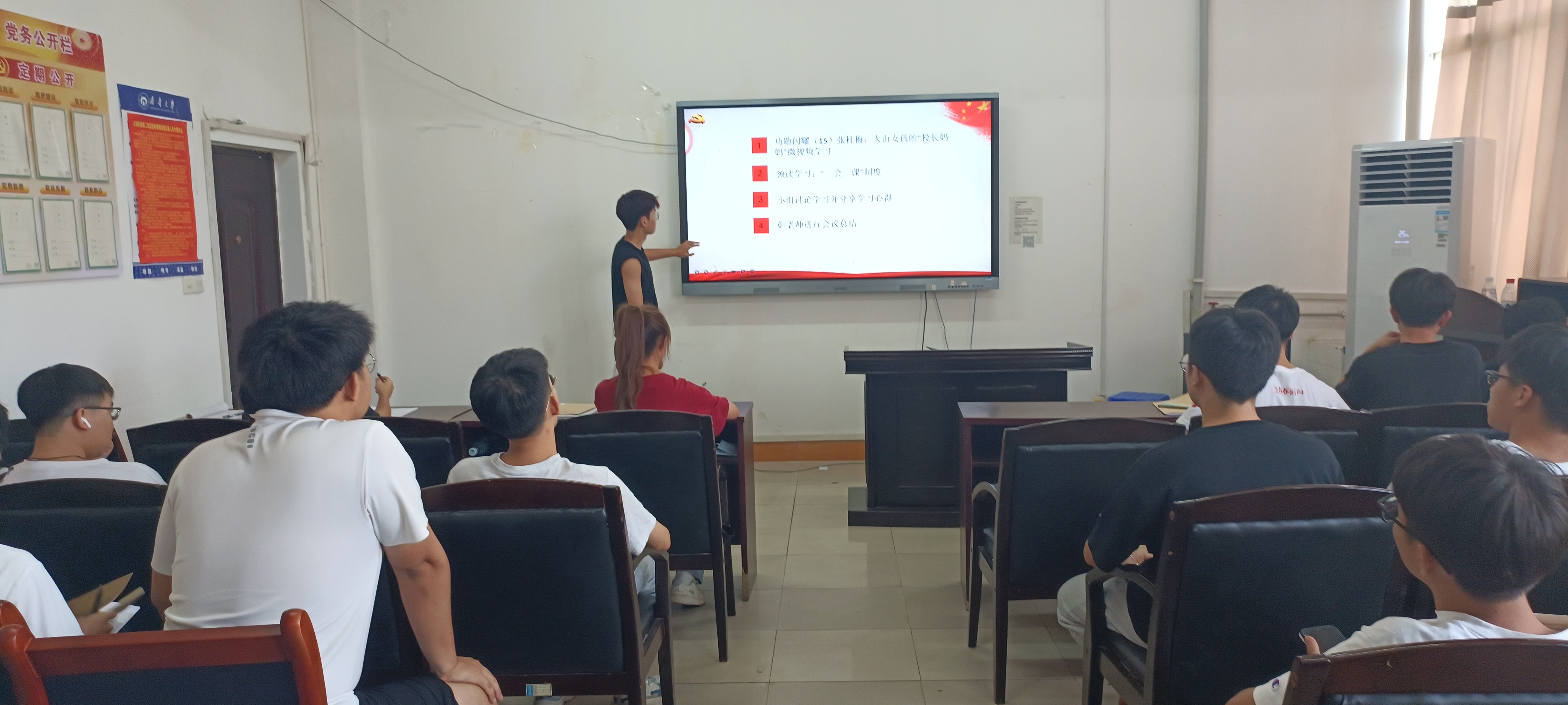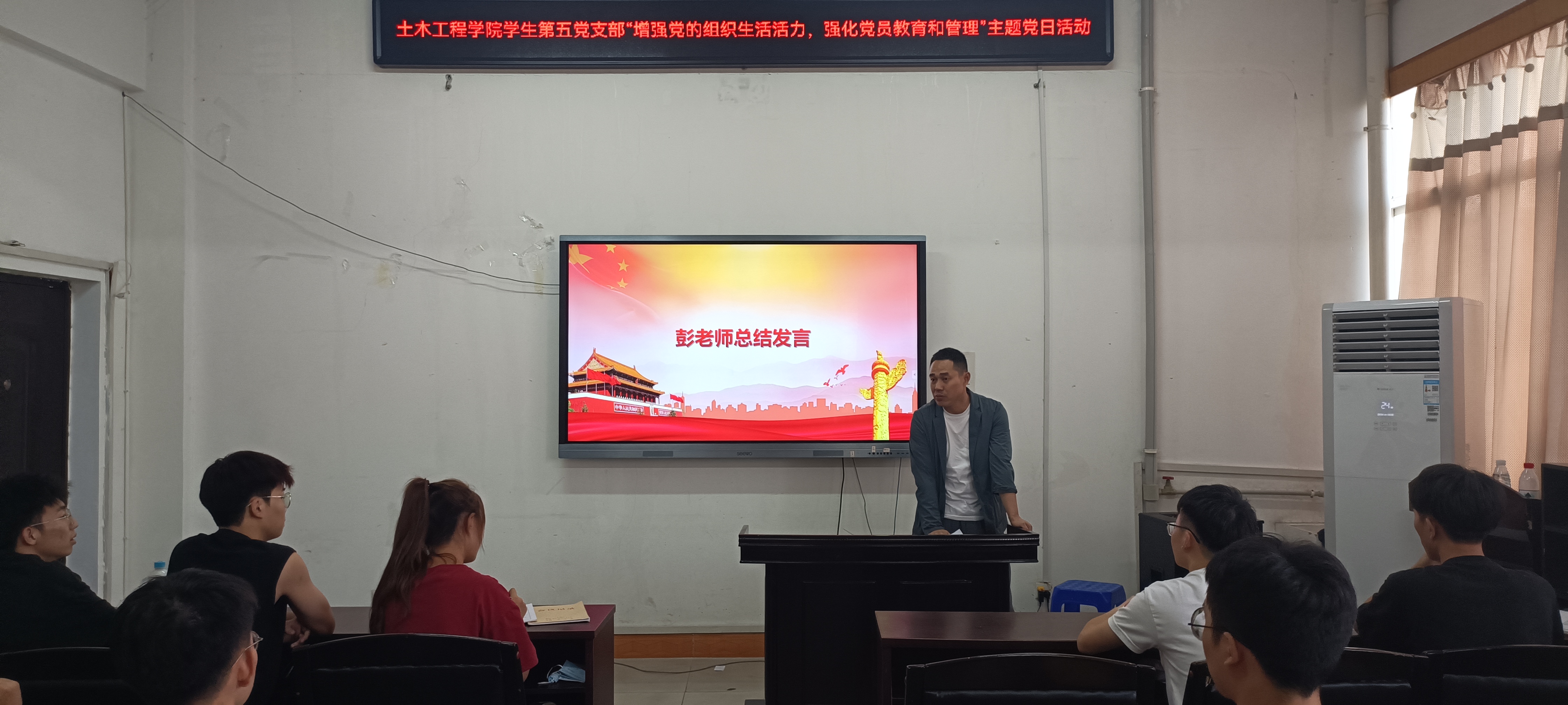 会议最后,彭老师总结讲话。最近是保研推免和秋季招聘时期,大四的党员不仅要做好自身,也要帮助其他同学,一些经验与心得多多分享给学弟学妹。