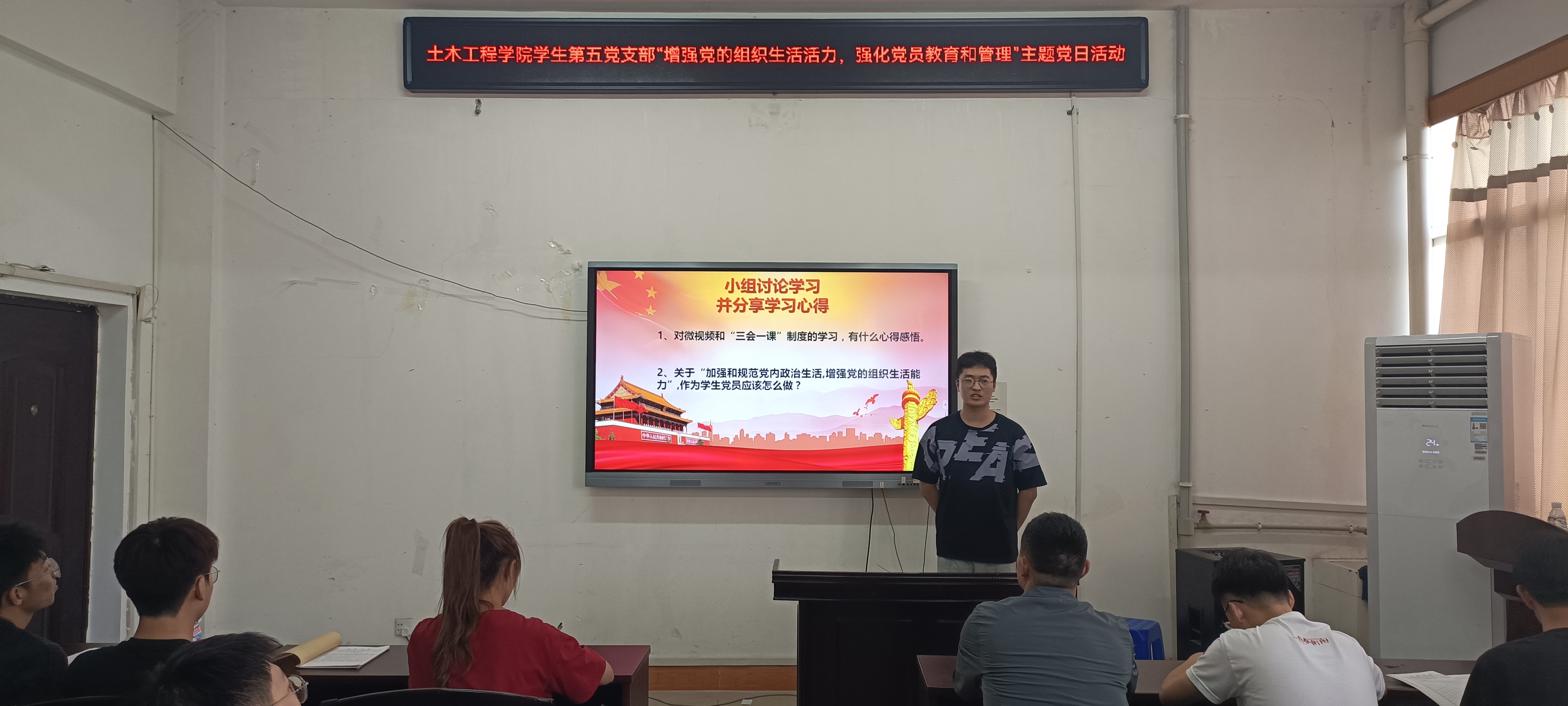 2022年9月16日17:00,伟德国际1946学生第五党支部于土木楼四楼会议室举行“加强和规范党内政治生活,增强党的组织生活活力,强化党员教育和管理”主题党日活动,会议由支部书记彭兴明老师主持,全体学生党员参加。