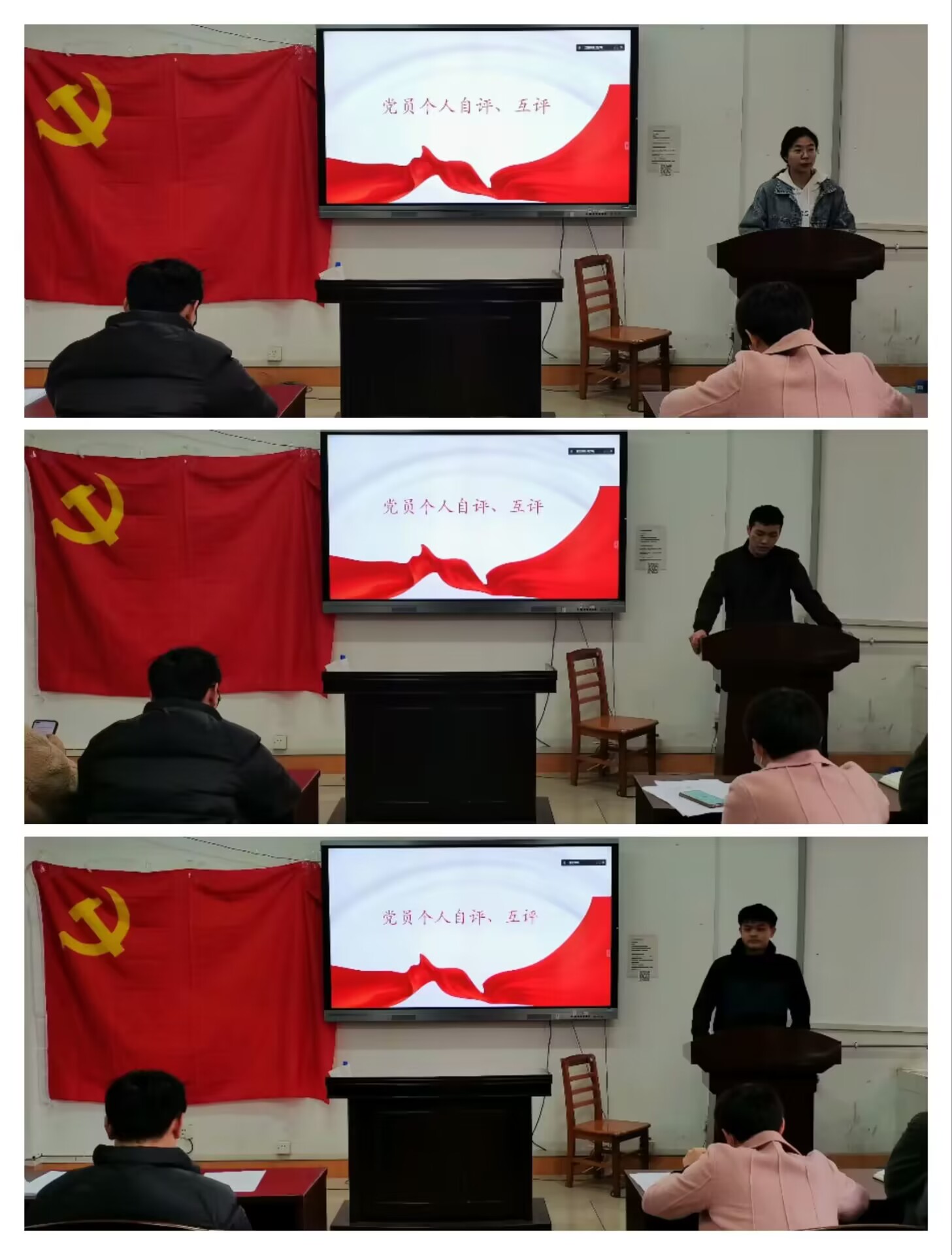 随后,全体党员开展批评与自我批评。与会党员依次发言,逐个开展个人自评和互评,找准突出问题,相互提出意见和建议。