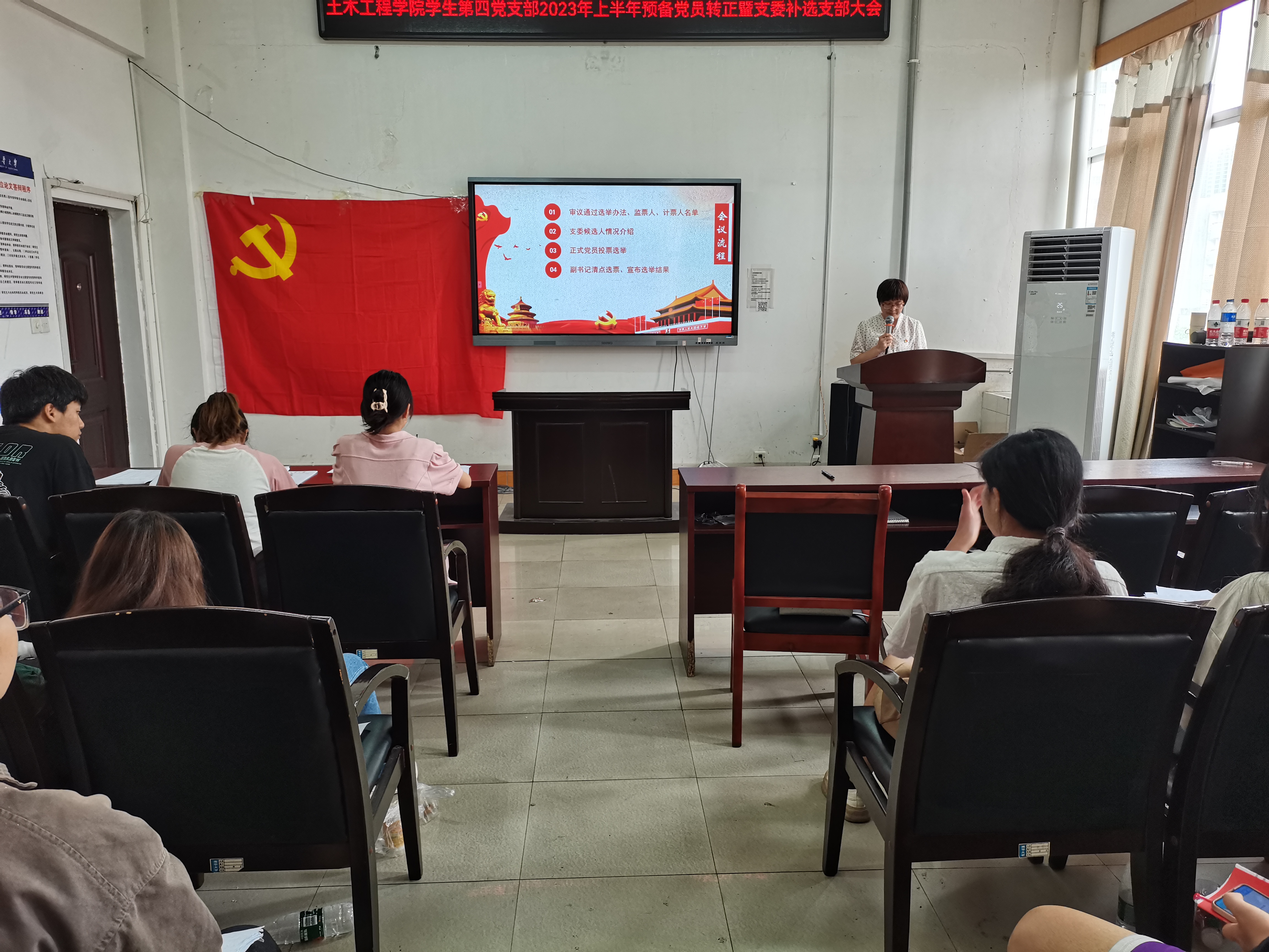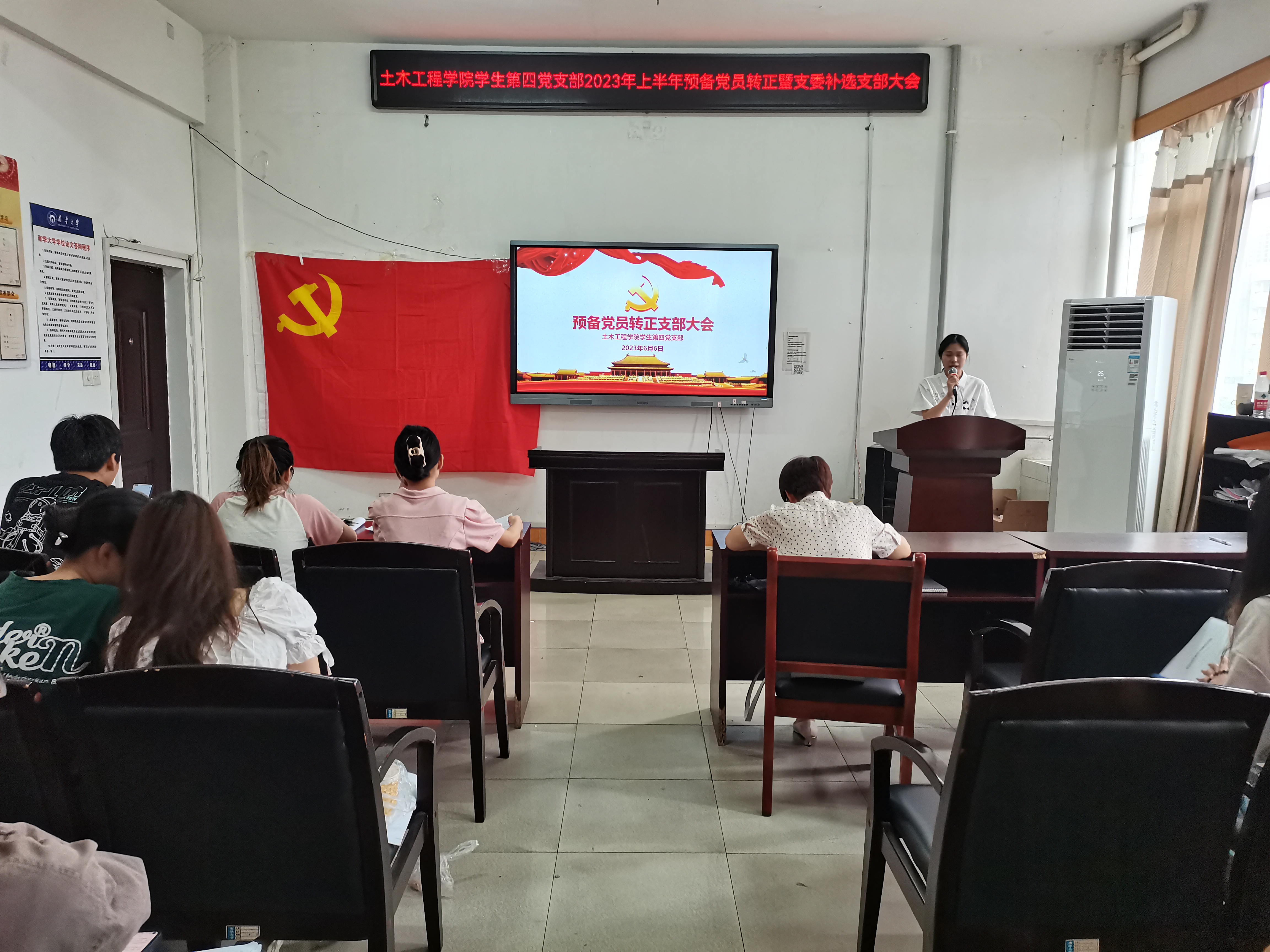 2023年6月6日上午,伟德国际1946学生第四党支部在土木楼四楼会议室召开预备党员转正暨支委补选大会,会议由支部副书记谌琪欣主持,支部全体党员参加。