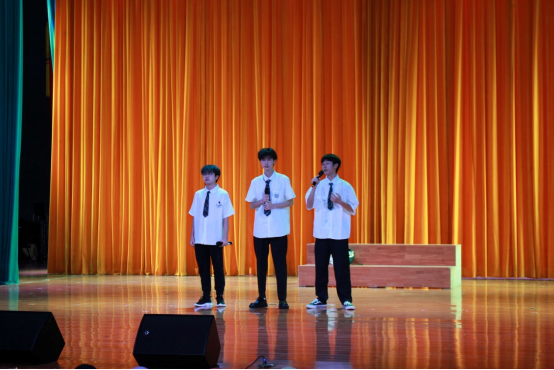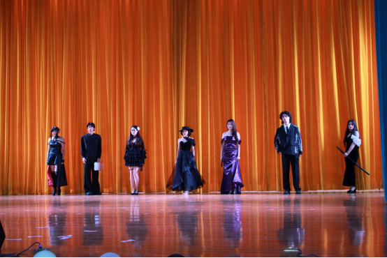 紧接着,会场响起了活泼的音乐,演艺队表演的《达拉崩吧》颇具活力,使气氛达到一个新的高潮。礼仪队带来的《White Angles》引得现场观众连连欢呼尖叫,新奇的创意,灵动的表达,主持人队的配音秀博得了观众们雷鸣般的掌声。