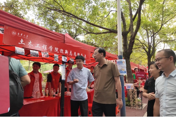 此次迎新活动中,校党委书记高山也来到了学院迎新志愿服务点慰问工作人员,与报到新生亲切交谈,表达了对同学们的殷切期盼。