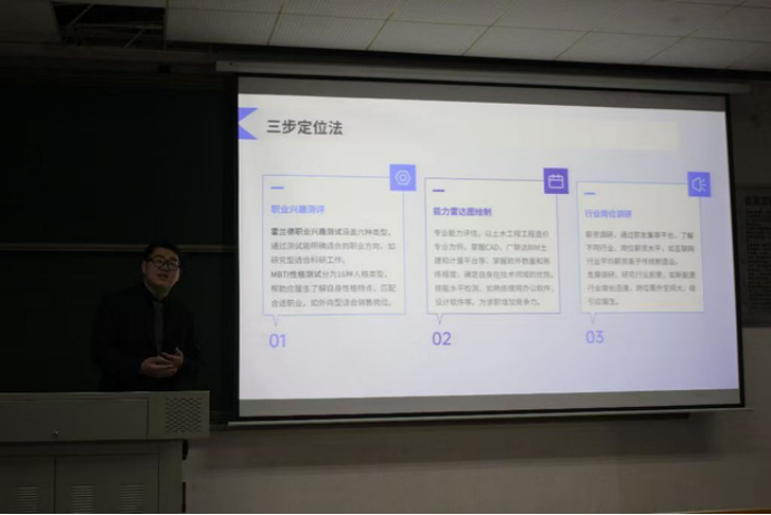 赵鹏学长讲述应届生求职指南,笔试和面试的通关技巧,为同学们提供了良好的掌握信息渠道与管理时间经验,让同学们在求职路上不再迷茫,而是充满自信。