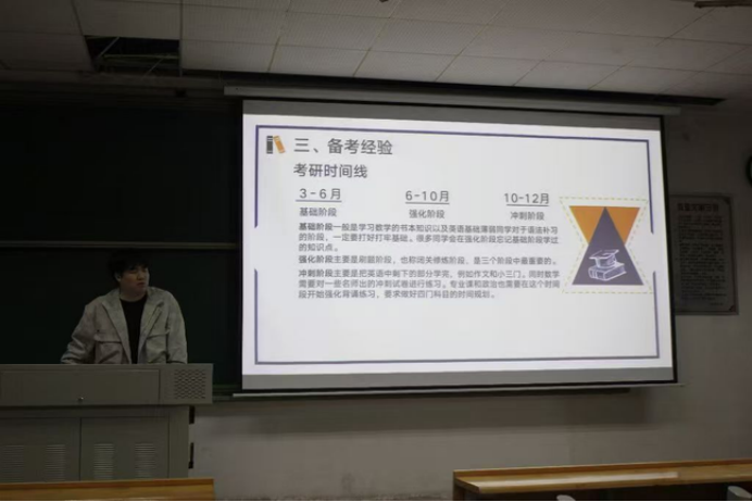 活动伊始,吴旦首先强调各位土木学子应当积极交流考研方法,敢于在考研的纷争上有所作为,鼓励同学们锐意进取,敢于当先,然后诚挚邀请往届优秀的毕业生倾心分享研习道路上的方法与心得。