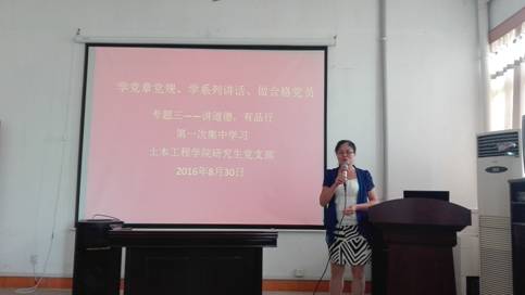 2016年8月30日下午,伟德国际1946研究生党支部组织全体党员开展“两学一做” “讲道德,有品行”专题三集中学习,此次集中学习由党支部书记杨金辉老师主持,在伟德国际1946四楼会议室举行。由于新学年开始,我们党支部也迎来了新一届的研究生成员,为党支部注入了新鲜血液。会议聚集了研二研三的在校研究生党员以及研究生新生党员,会议开始阶段,党支部表达了对新生党员的热烈欢迎,并邀请研究生新生党员逐个进行了自我介绍,大家相互之间有了初步认识。之后党支部会议进行到“两学一做”的“讲道德,有品行”的专题集中学习阶段,学习习近平总书记关于社会主义核心价值观的重要论述,在座党员认真听取并学习了专题的详细内容。