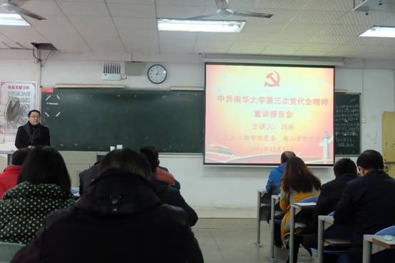 12月15日下午3点在第9教学楼202室,我院和船山学院联合举办了“理论文件讲坛”宣讲,发展规划处处长刘永作了题为“切实加强学科水平评估建设为抓手全面提升人才培养质量”的报告。会议由船山学院党委书记阳剑南主持,两院全体教职工参加了会议。