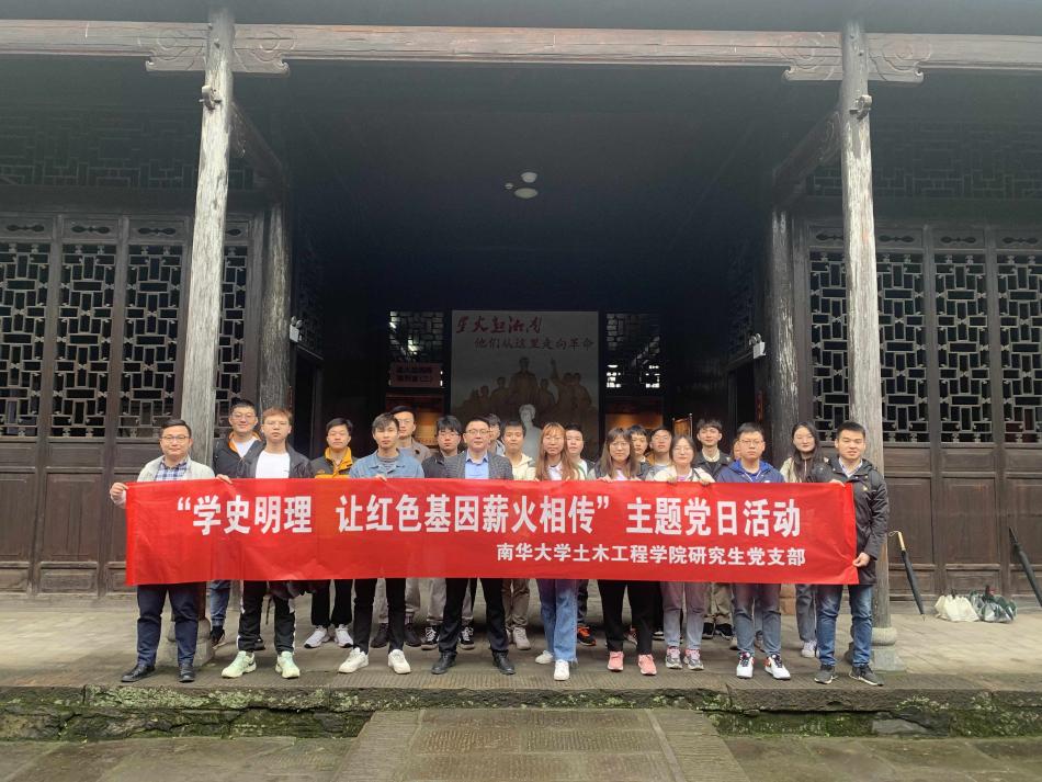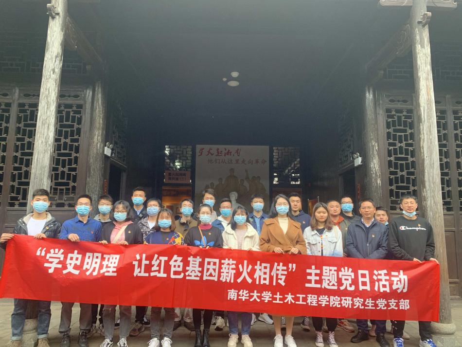 伟德国际1946各研究生党支部积极响应党的号召,于2021年4月11日组织所有研究生党员沿着毛泽东、夏明翰等革命先烈在衡阳的足迹来到了湘南学联旧址,开展了以“学史明理,让红色基因薪火相传”为主题的党日活动,缅怀革命先烈,铭记历史,以史为鉴,奋发图强,为中华民族的伟大复兴而努力奋斗。