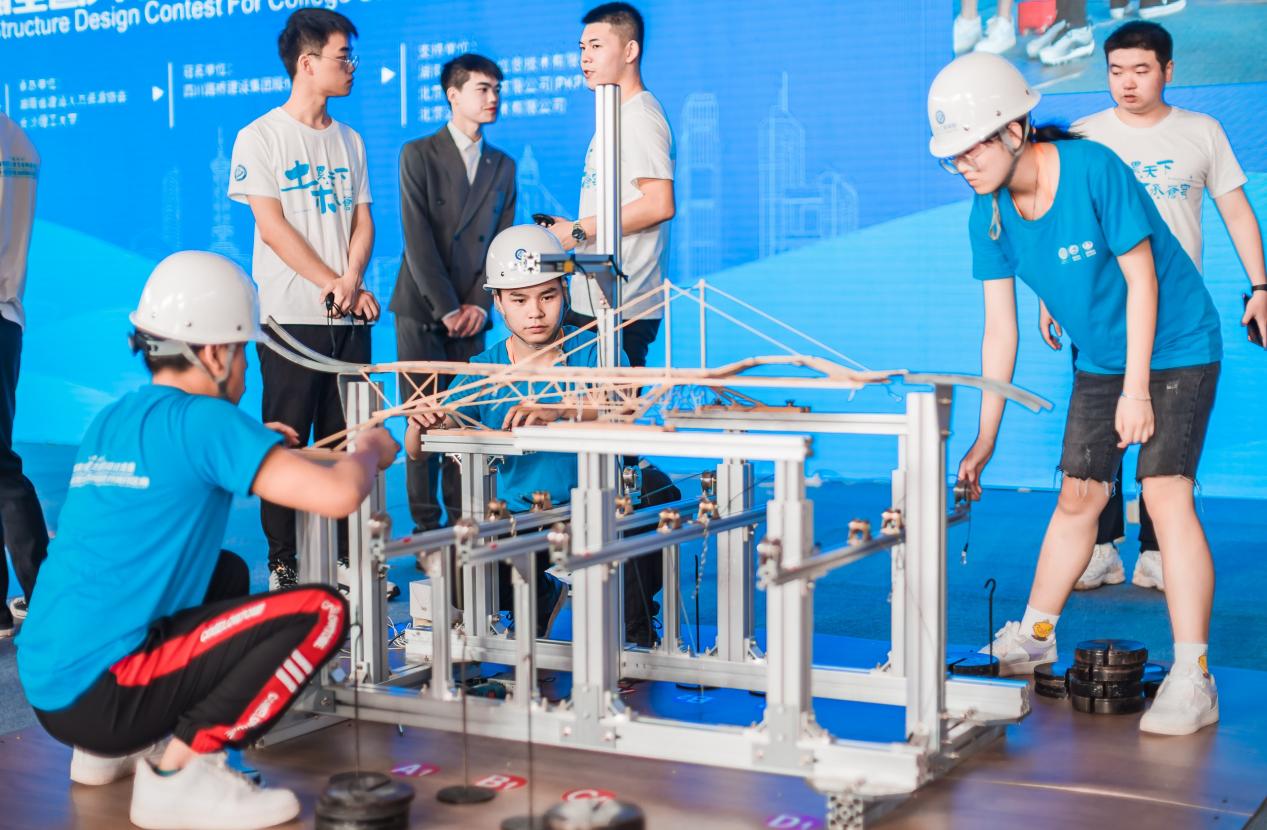 大学生结构设计竞赛是一项针对在校大学生极富创造性、挑战性的综合性学科竞赛,旨在通过专业知识的综合运用,多方面培养大学生的创新思维、动手实践能力和团队协作能力,是教育部重点支持的九大大学生学科竞赛之一,是我国土木工程学科里最高水平的学科性竞赛,被誉为土木皇冠上最“璀璨的明珠”。本次竞赛是由湖南省教育厅、住建厅联合主办。本次竞赛题目是:桥梁结构设计与制作。以承受竖向静力和局部转移荷载的桥梁结构为对象,通过在赛题中加入部分不同参数,赋予赛题更多的灵活性和挑战度,强调对未来卓越工程师综合能力的全面要求。赛题难度大。