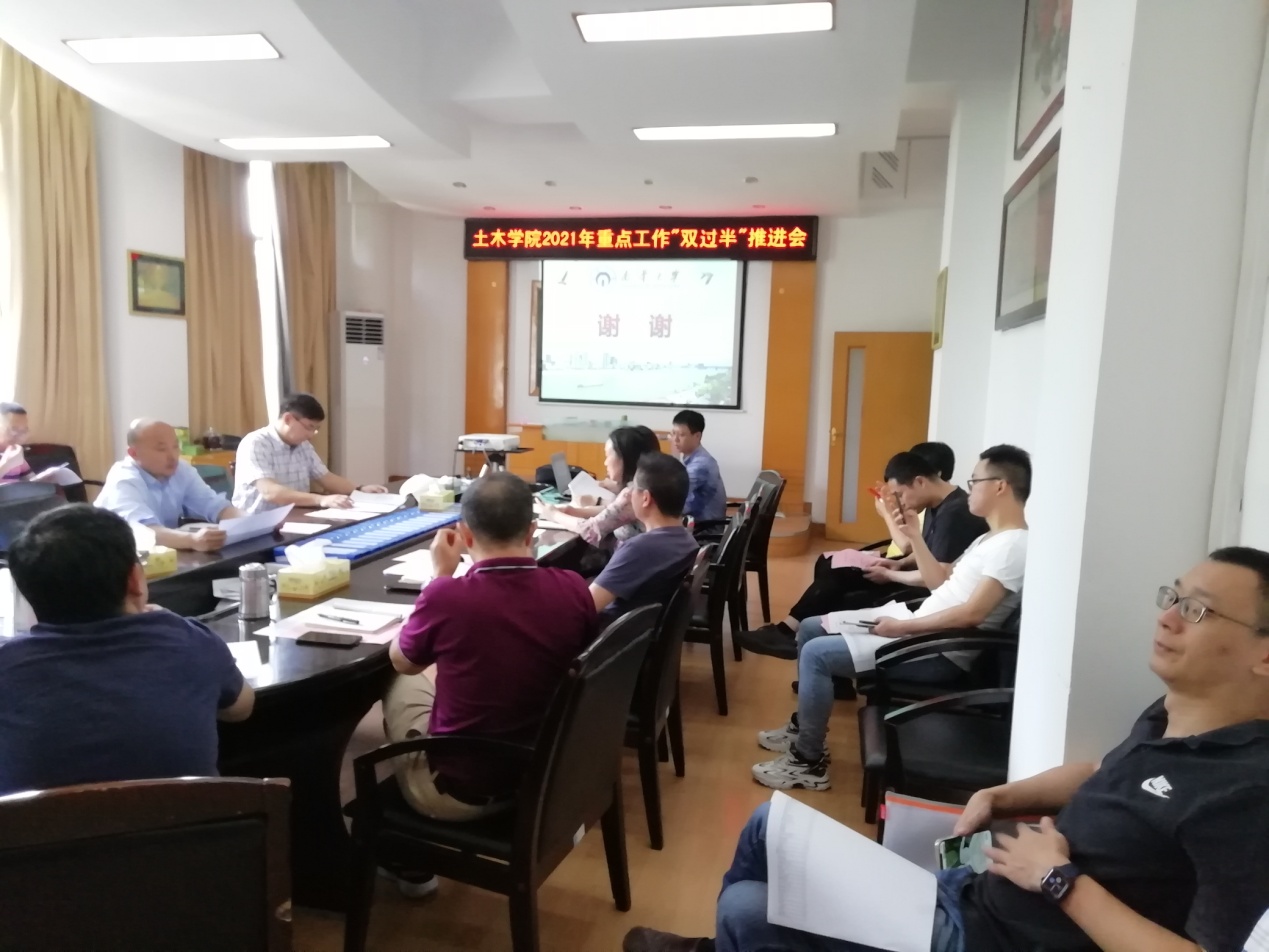 2021年7月9日上午在学院三楼会议室,学院召开专题会议,主题是2021年重点工作“双过半”推进会。谢东院长主持会议,院领导、正副系室主任、支部书记参加会议。