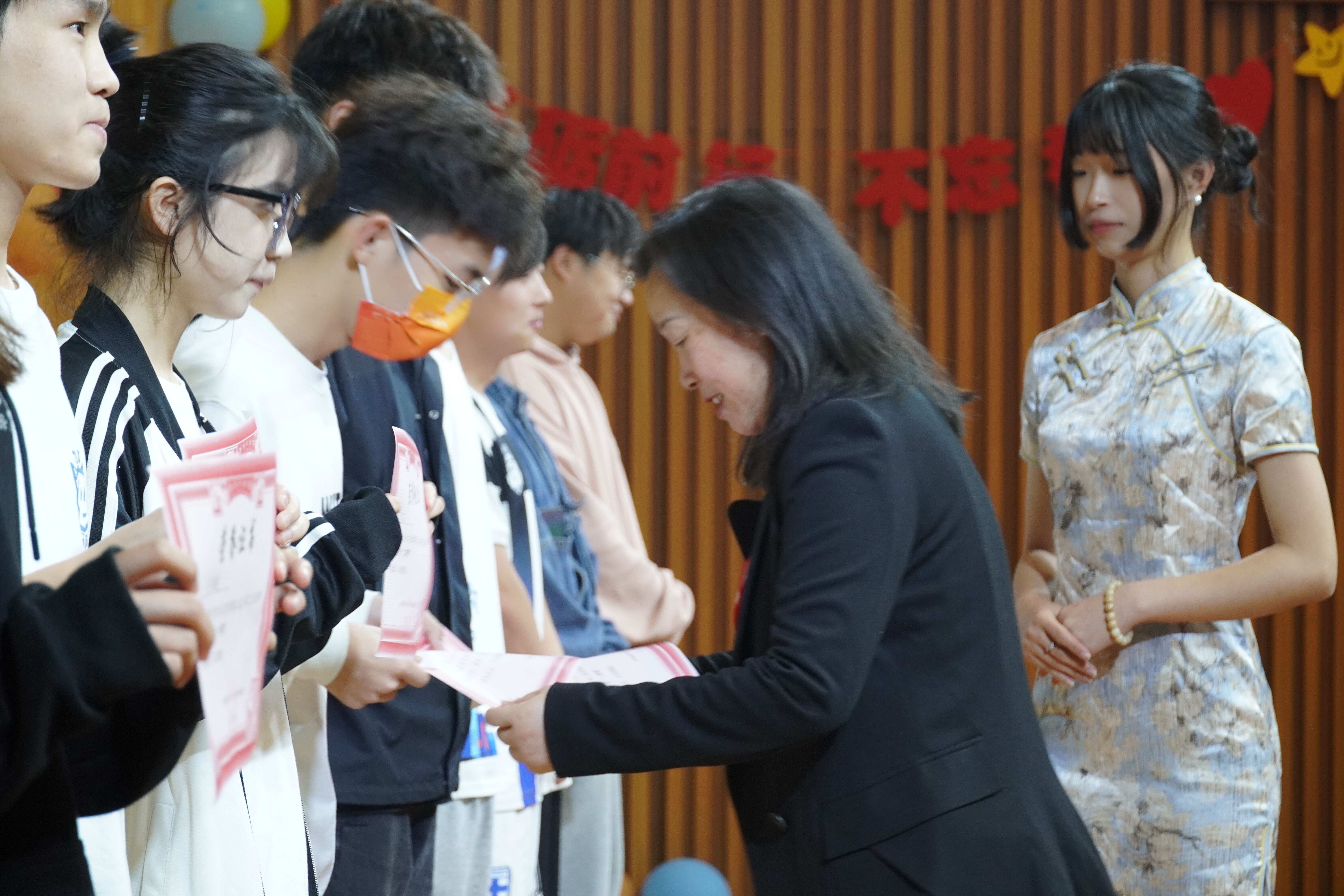 晚会伊始,郑宇老师宣读“五四”表彰文件并致辞,他向所有努力奋斗、辛勤付出的师生们致以衷心的感谢,向所有受到表彰的先进集体和先进个人表示热烈的祝贺;同时,他引用习近平总书记的重要讲话,向在座的青年学子们致以厚望,希望同学们都能在青春的赛道上奋力奔跑,争取跑出当代青年的最好成绩。随后,石建军老师、郑宇老师向获得“五四”表彰的学生颁发证书。