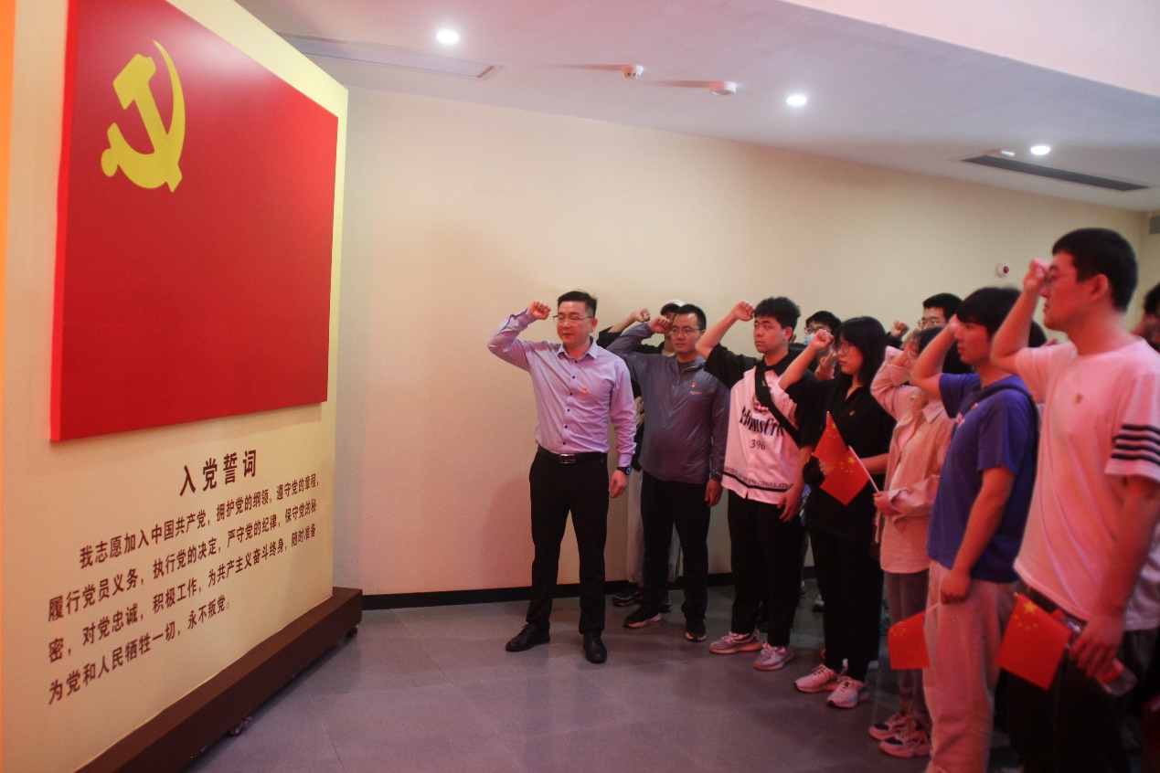 随后,全体人员走进衡阳党史馆,第八党支部书记陶秋旺同志率全体党员同志在党旗下庄严宣誓,重温入党誓词。支部党员认真聆听讲解员的讲解,从一件件珍贵的文物实物、一份份翔实的档案资料、一幅幅生动的图片影像、一处处历史复原景中追寻着红色记忆,感悟着共产党人坚定的理想信念,从红色精神中汲取着奋进力量。