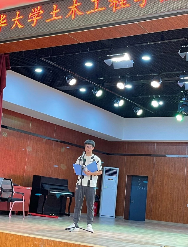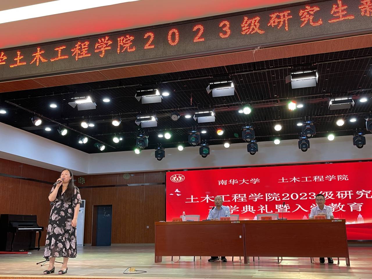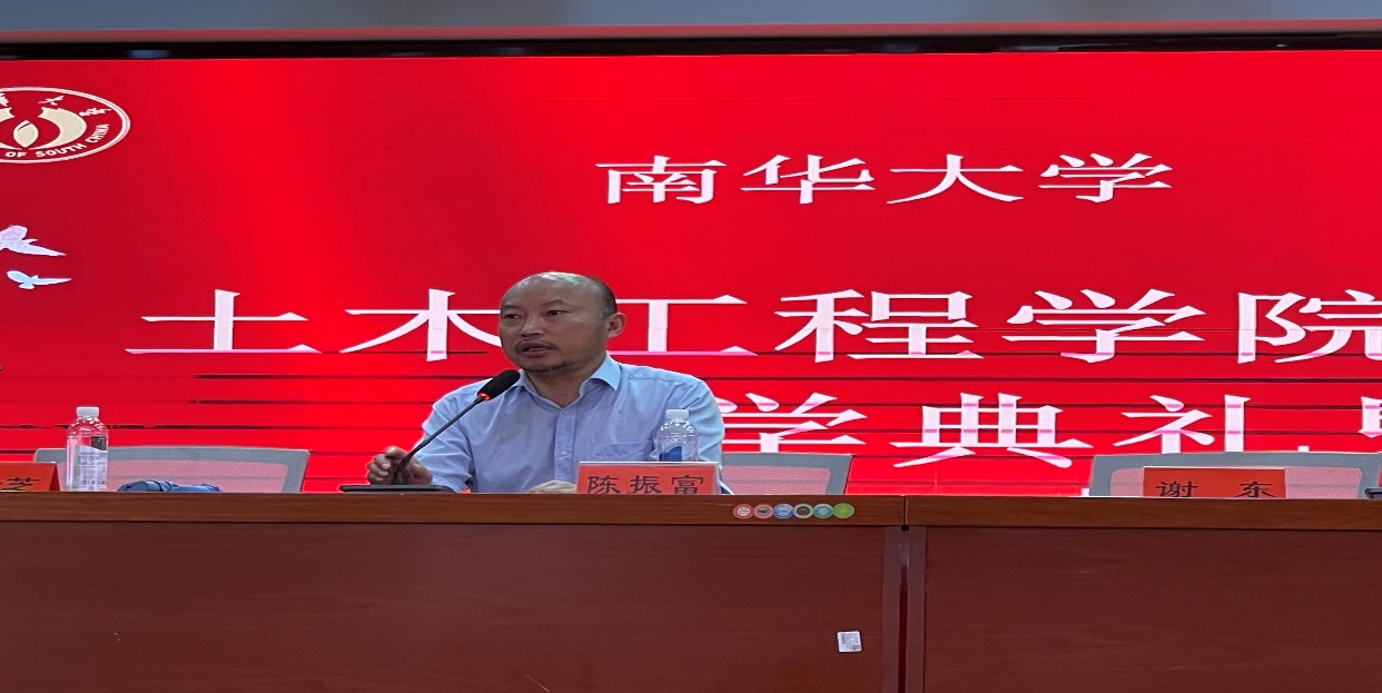 伴随着壮烈的国歌奏响,开学典礼正式开始。谢东院长热情欢迎125位新生加入这个大家庭,并向他们介绍了学院的师资力量和科研平台。他向新生们传递了“真、新、恒”三个字,表达了他对同学们的期望:要追求真正的知识和学问,要拥有创新的思维方式,寻找新的科学方法和工具来解决新的问题,遇到困难时要坚持不懈、勇往直前。他希望新生们能够发扬土木学科精神,踏实学习,勇于承担困难和挑战,并以“强国有我,我是南华土木人”激励大家。