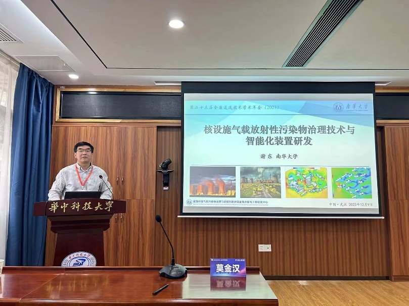 谢东教授受邀做专题论坛主旨报告《核设施气载污染物治理技术与智能化装置研发》,并与现场学者、师生就“碘污染控制”、“除氡机器人”等课题进行了热烈的讨论。