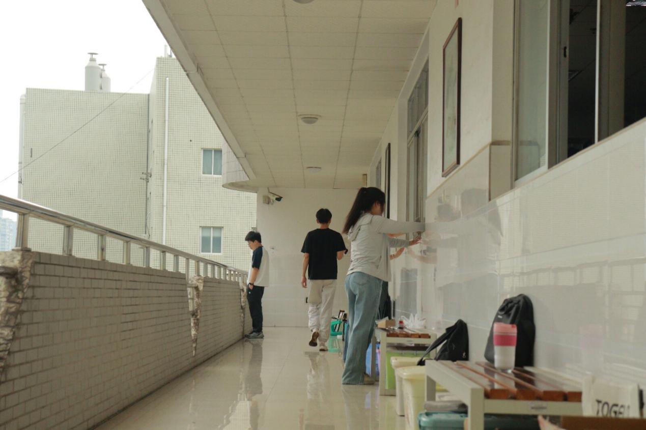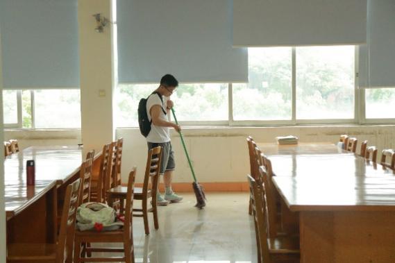 一部分同学负责整理图书,他们穿梭在一排排书架中,将书架上的图书书脊朝外,沿书架排成一条直线,经过整理的图书架变得整齐、美观。另一部分同学负责卫生清洁,他们拿起拖把和扫把,对地面进行细致入微的打扫,重现洁净的地面。大家分工协作、相互配合、认真细致,快速完成了整理打扫工作,充分体现出伟德国际1946入党积极分子热爱劳动、传递奉献、团结协作的精神风貌,赢得了图书馆老师的认可和赞许。