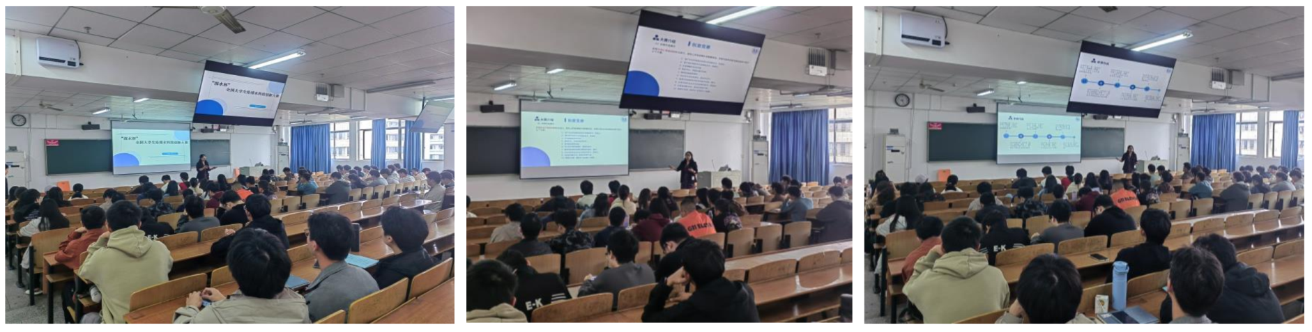 学科竞赛宣讲:解读赛事规则,激发参与热情。在学科竞赛赛事板块中,学生们积极参与了学院组织的“金种子杯”“挑战杯”“结构设计竞赛”等赛事宣讲会。此外,专业还特别组织了“深水杯全国大学生给排水科技创新大赛”宣讲会。宣讲老师荣丽杉生动地介绍了深水杯竞赛的概况与重要性,尤其是往届参赛获奖选手的考研上岸小故事,让在场学生印象深刻。此次赛事宣讲会为学生系统解读各大赛事规则,为学生参与竞赛提供了有力支持。