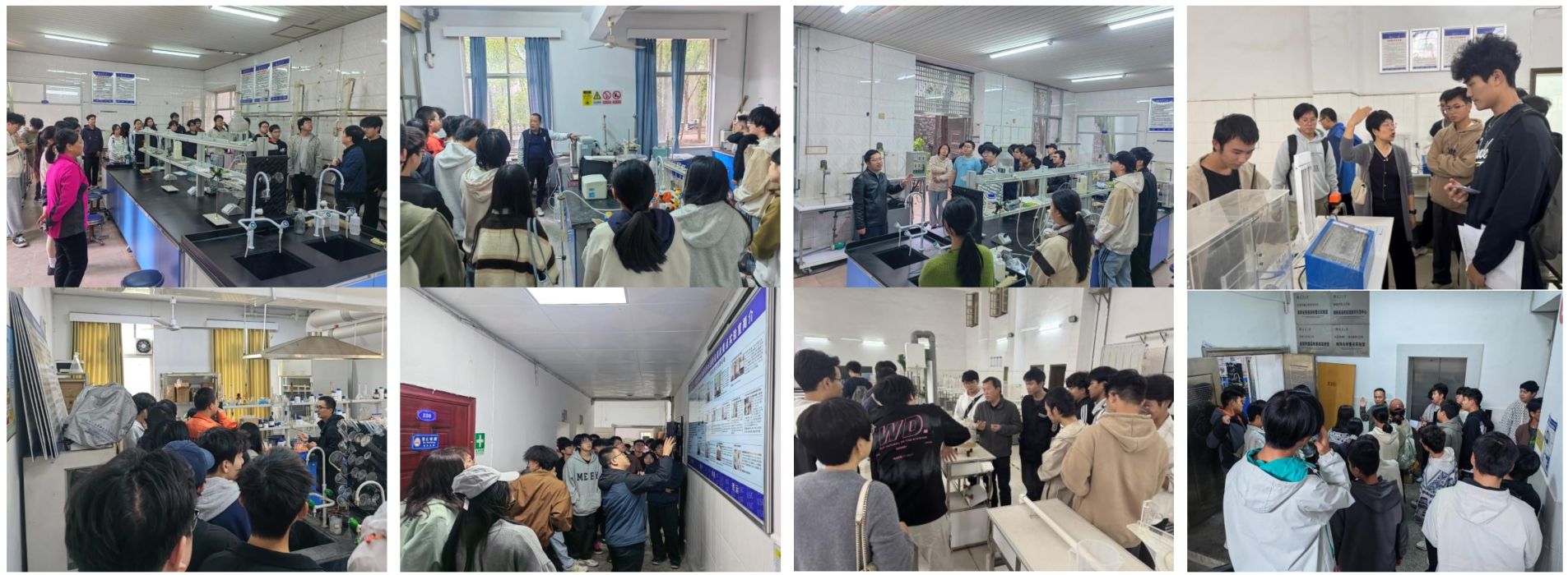 实验室参观:强化专业认知,明晰职业方向。在实验室参观板块中,学生们在专业老师的带领下,参观了基础和专业实验室。刘迎九、刘金香、曾涛涛、王国华、李显利和周帅等老师全面介绍了微生物学和水力学实验设备,通过导览、演示、展示和答疑等环节,强化了学生的专业认知和创新基础。黄仕元、陈胜兵和蔡萍莉等老师重点讲解了水处理工艺与设备、行业现状及未来趋势,并就未来就业给予耐心指导,为学生职业发展指明方向。