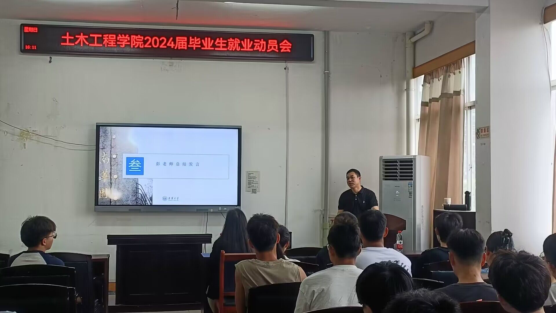 会上,就业专干彭兴明老师就当前就业形势和毕业生如何更好地适应新形势下的就业市场进行了深入分析和讲解。他提出,毕业生应密切关注国家就业政策,以政策为推手,认清时代形势,加快毕业大学生就业节奏。同时也指出,需要不断提高个人素质和综合能力,积极提升岗位竞争力,努力成为适应时代发展需求的高素质人才,在与用人单位进行合同签订时,保持认真、慎重的心态进行签订,在面试以及签订过程中应注意个人形象,维护好学校的形象与声誉。
