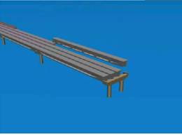 该实验项目也用来模拟各种常规简支梁桥上部结构的施工过程。简支梁类型包括预应力和普通混凝土空心板梁,预应力混凝土小箱梁及预应力混凝土T梁等常规简直支梁。该项目主要包括预制梁梁体的预制、吊运及架设,现浇梁梁体的浇筑,铺装层的铺装,以及桥面附属设施的架设等施工过程的模拟。